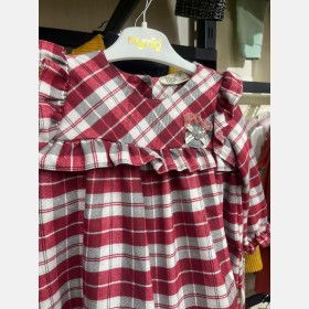 طقم فستان نص كاروهات مع جاكيت شتوي